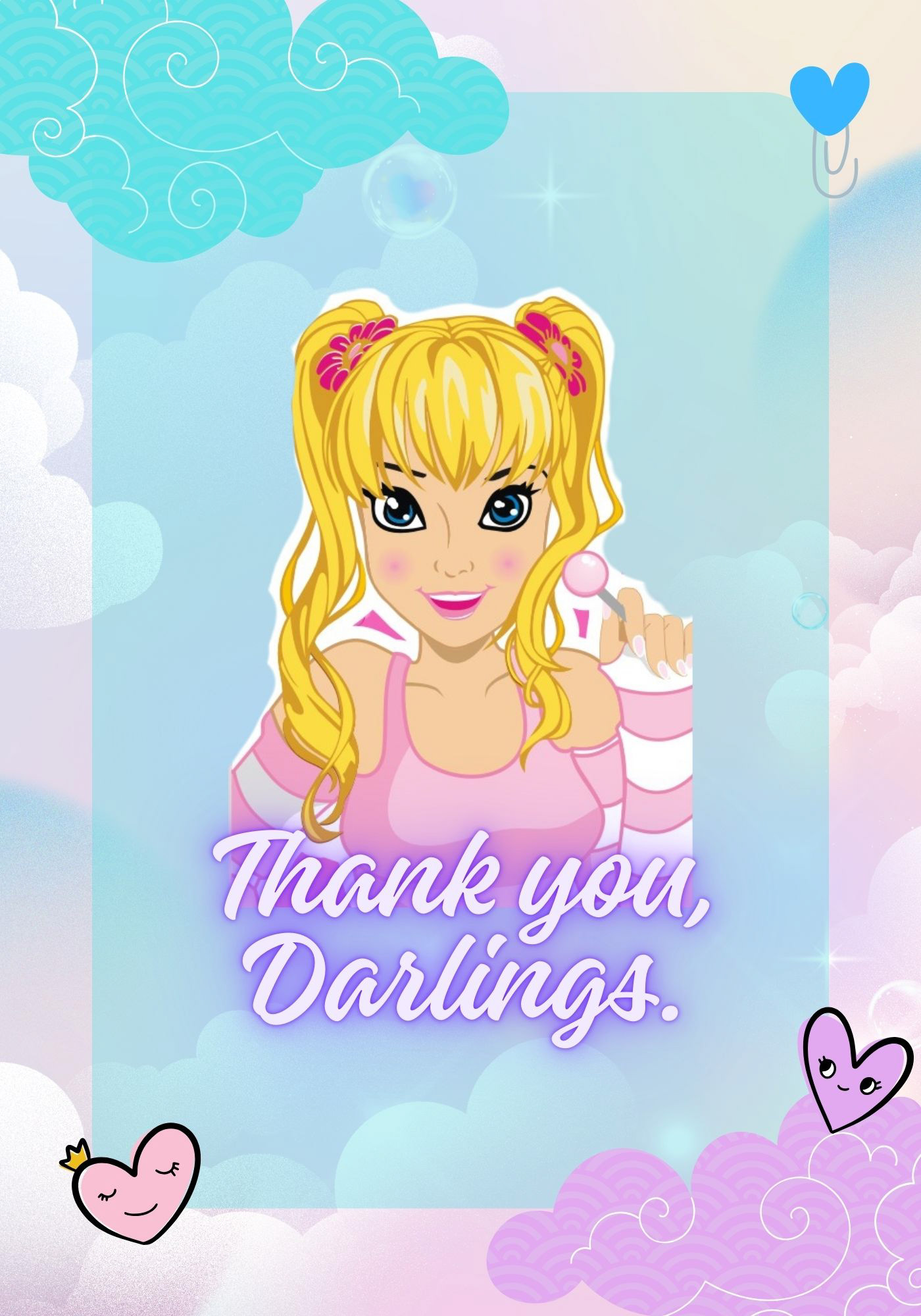 The character was designed with emphasis on visual identity, emotional connection, and commercial appeal, featuring soft lines, a friendly expression, and a pink-based color palette aligned with the girls’ universe.